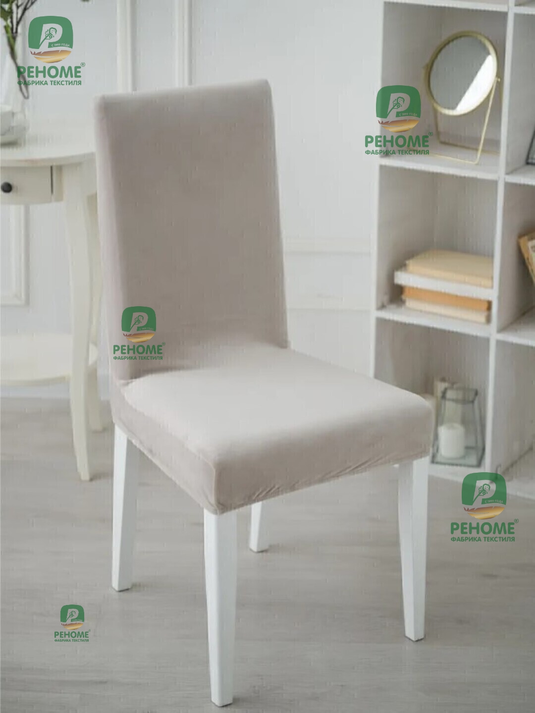 - Чехол для стула велюр-стрейч Модерн Марианна<Бежевый>